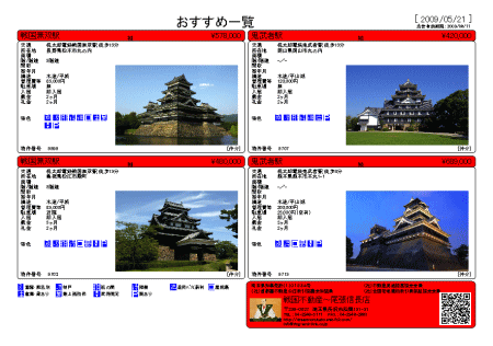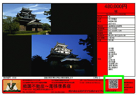 自社の携帯サイトURLをQRコード画像にしておくことで、@dreamの図面やチラシの会社情報帯に QRコードを挿入することが出来ます。 ![]() 会社情報帯の変更方法は@dream編 物件マスタ 1、図面の会社情報を変更をご覧ください。
