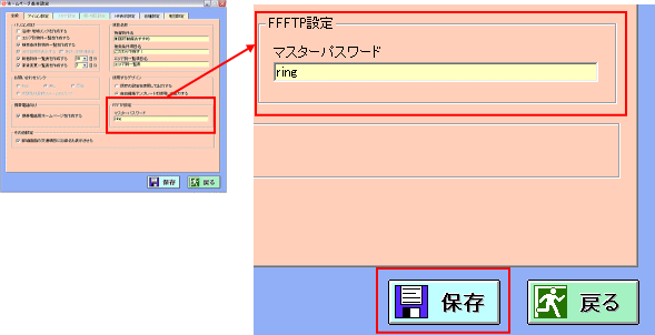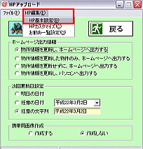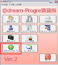 1、@dreamのレベルアップを行って最新版にします。 ※@dreamが最新版になっていないと、マスターパスワードの設定は出来ません。 「メインメニュー」>「ヘルプ」>「最新版ダウンロード」または下記URLから行ってください。 @dream2000をお使いの方 http://www.ring-and-link.co.jp/dream2000/soft/index.htm @dreamProgreをお使いの方 http://www.ring-and-link.co.jp/dreamprogre/soft/ 2、最新版@dreamを起動して、「HPアップロード」をクリックします。 (ここでは@dreamProgre賃貸版でご説明します) ![]() 3、「HP編集」>「HP基本設定」をクリックします。 ![]() 4、「全般」>「FFFTP設定」。15-3で最新版FFFTPに設定した「マスターパスワード」を入力してください。 ![]() 5、「保存」をクリックすれば設定は完了です。@dreamからのアップロードは、これまでどおり行っていただけます。 |