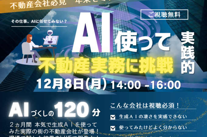 2025年12月8日(月)に、不動産実務におけるAI活用をテーマにしたオンラインイベント「不動産業者様向けオンライン勉強会」を開催...